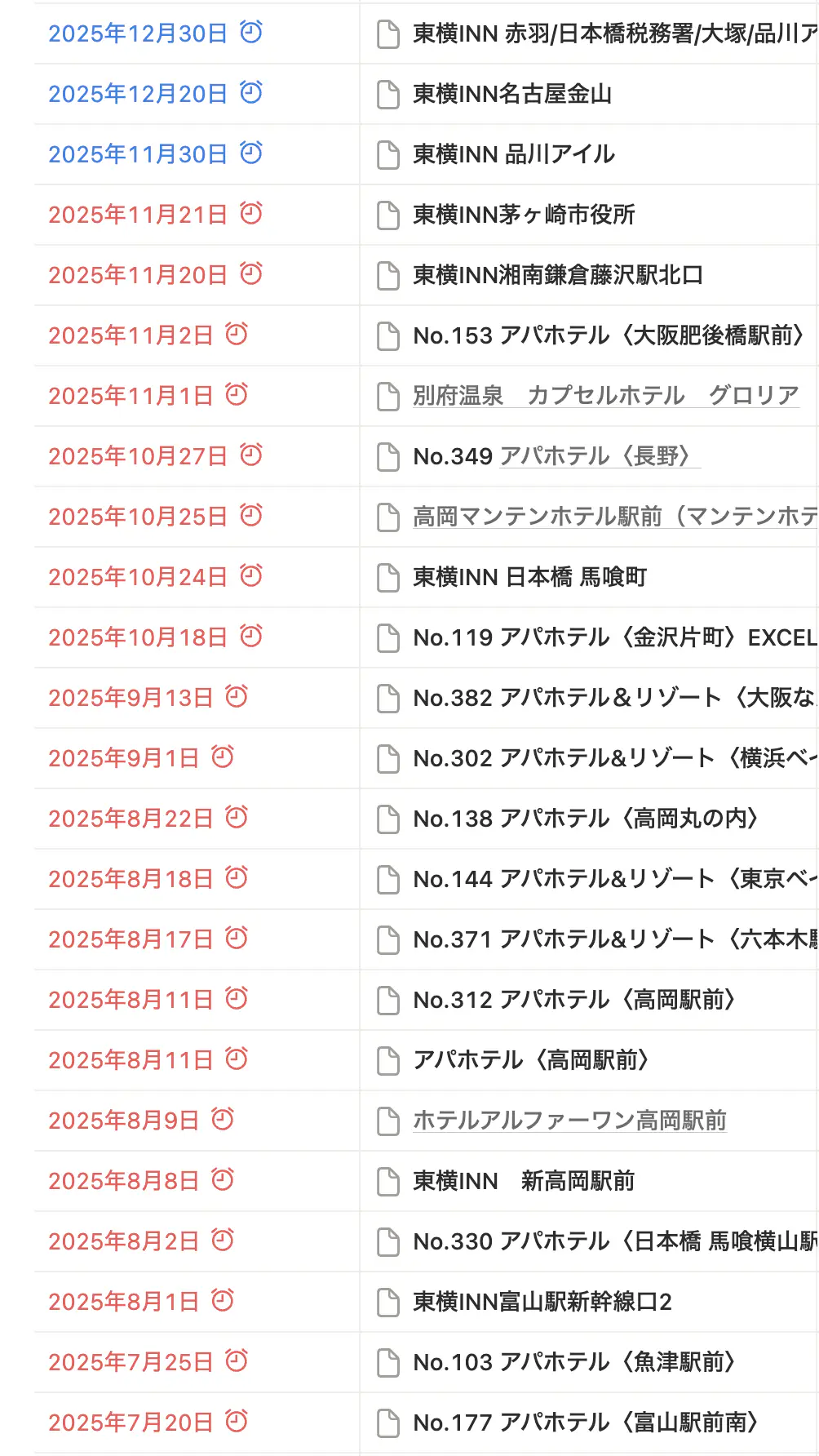 前半は、ほぼ全てアパホテルに宿泊しているが、11月に入りだしたあたりから東横INNに切り替えている。